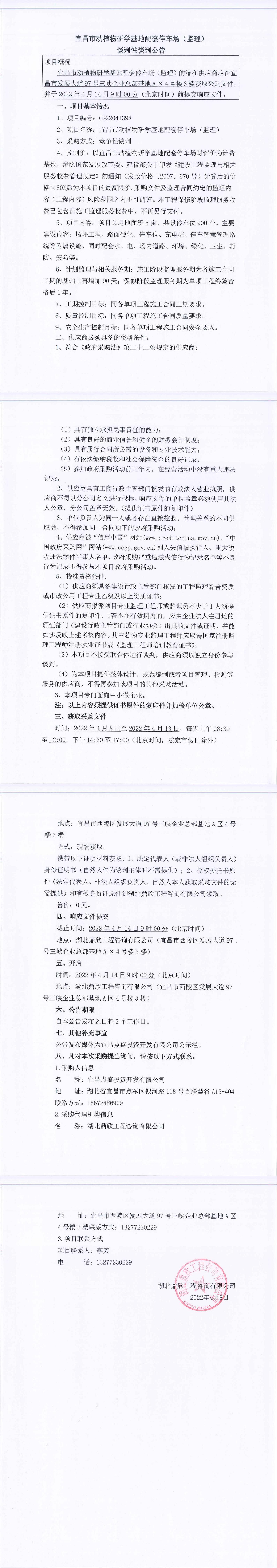 宜昌市動(dòng)植物研學(xué)基地配套停車(chē)場(chǎng)監(jiān)理談判公告