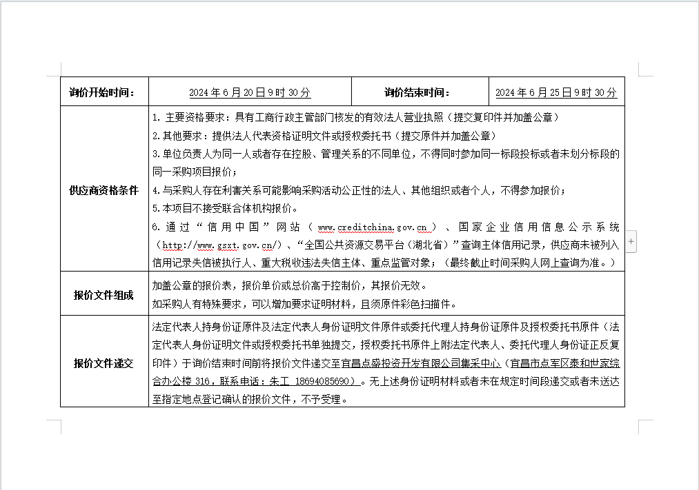 詢價(jià)公告