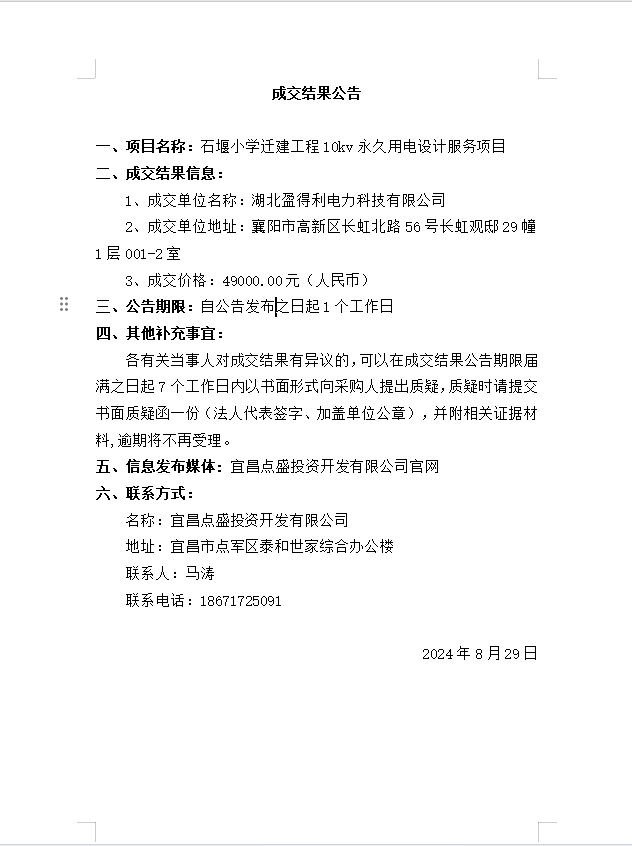 發(fā)布時間:2024/8/29 來源:宜昌點盛投資開發(fā)有限公司 訪問:1053