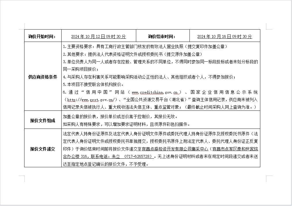 詢(xún)價(jià)公告