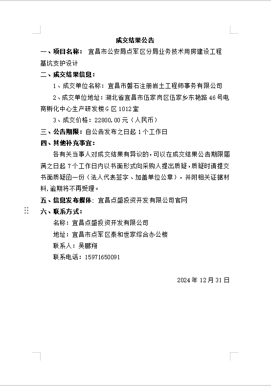 宜昌市公安局點(diǎn)軍區(qū)分局業(yè)務(wù)技術(shù)用房建設(shè)工程基坑支護(hù)設(shè)計(jì)成交公告