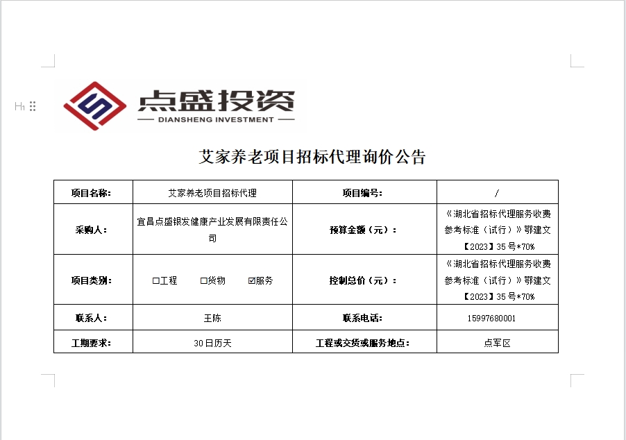 艾家養(yǎng)老項目招標代理詢價公告