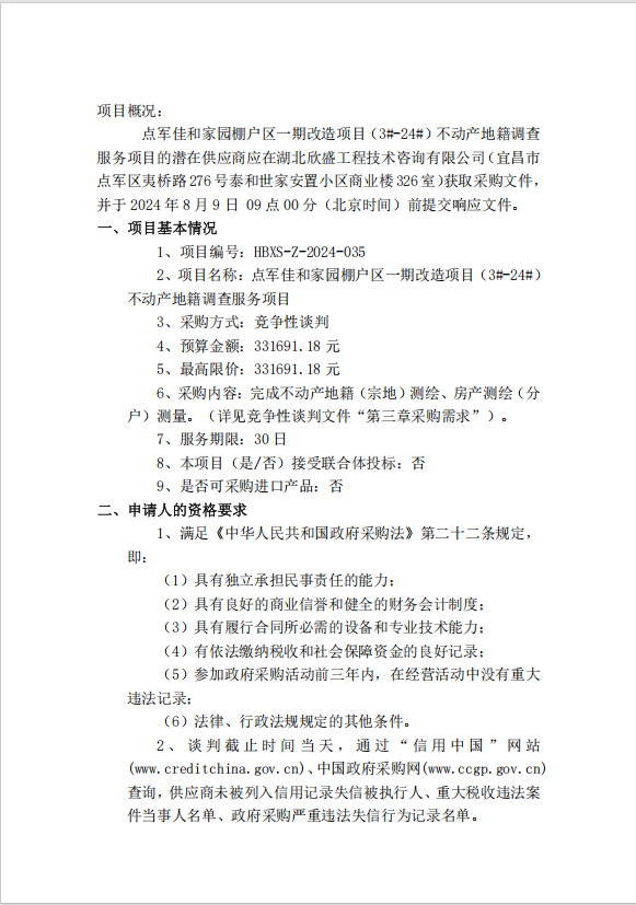 點(diǎn)軍佳和家園棚戶區(qū)一期改造項(xiàng)目(3#-24#)不動(dòng)產(chǎn)地籍調(diào)查服務(wù)項(xiàng)目談判公告